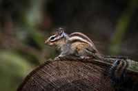 Foto van een lief klein grondeekhoorntje zittend op een stuk boomstam in het herfst bos