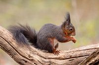 Eekhoorn in het bos. Mooi met zijn staart omhoog. Zo lief om ze zo te zien zitten. Leuk voor een kinderkamer, maar ook in de woonkamer. Bruine en groene kleuren.