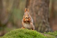 De eekhoorn past zo mooi in de kleuren van de omgeving.