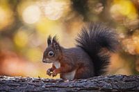 Eekhoorn op boomstam met bokeh. Deze eekhoorn is gefotografeerd in Zandhove bos in Zwolle.