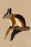 Aardetinten kunstwerk van eekhoorn tegen beige achtergrond