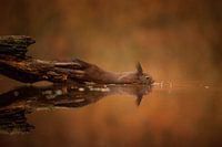 Deze Eekhoorn vond een nootje in het water en moest dit hebben, dit met de herfstkleuren en prachtige spiegeling was voor mij een zo goed als perfect plaatje.