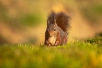 En door verder de rustige achtergrond komt de eekhoorn erg mooi tot zn recht.Het is voor mijn gevoel zo een sfeervol beeld en past in ieders interieur of tuin.