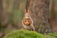 De eekhoorn past zo mooi in de kleuren van de omgeving.