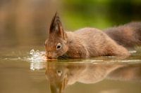 Soms leg je grappige momenten vast. De eekhoorn wilde een noot uit het water grijpen, maar dat ging niet helemaal goed.