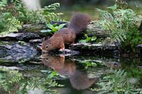 Eekhoorn, prachtige reflectie van een drinkende eekhoorn