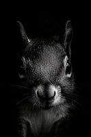 Een betoverend zwart-wit portret van een eekhoorn vangt de kijker met zijn grote, expressieve ogen en gedetailleerde vacht. De mysterieuze duisternis omlijst het levendige beeld en voegt een charmant, natuurlijk tintje toe aan elke kamer. Perfect voor in de woonkamer om gesprekken te stimuleren en een gezellige sfeer te creëren.