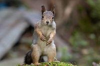 Dit eekhoorntje was druk bezig met het verzamelen van nootjes midden in de herfstige natuur van Finland.