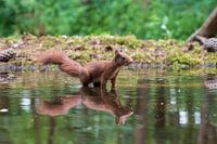Eekhoorn met spiegelbeeld. Deze eekhoorn ging lekker door het water om te drinken. De reflectie maakt het een bijzonder plaatje.