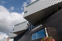 Amersfoort The Netherlands. Eemhuis cultural centre exterior. The Eemhuis has four cultural institutions, Bibliotheek (library) Eemland, Archief Eemland, Scholen in de Kunst and Kunsthal KAdE