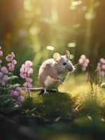 Dit fine art ai beeld toont de verborgen schoonheid van een schattig muisje in een betoverende omgeving van bloemen. Met prachtige scherpte-diepte en zachte kleuren wordt het muisje gevangen in een dromerige setting, omringd door bloemenpracht. Het beeld weerspiegelt de delicate en poëtische kant van de natuur, waarbij het muisje als een onverwachte maar betoverende hoofdrolspeler fungeert. Een perfect kunstwerk voor liefhebbers van fine art fotografie en de subtiele schoonheid van de natuur.