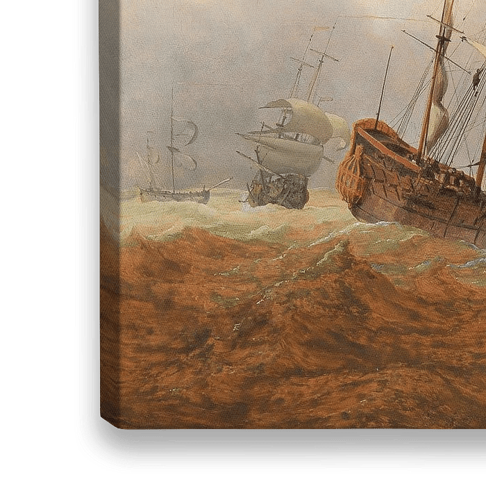 Koop Een Engelse schip in ruw water, Willem van de Velde II. als reproductie op canvas, aluminium dibond, (ingelijste) fotoprint, behang en ArtFrame, op maat geprint in Fine-Art kwaliteit.
