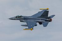 Een F-16 van de Koninklijke Luchtmacht stijgt op met nabrander