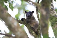Een Lumholtz' boomkangoeroe (Dendrolagus lumholtzi) jong hoog in een boom in een droog woud Queensland, Australië