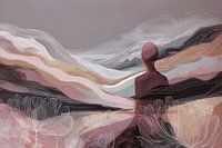 Moment van Bezinning toont een verstild samenspel van mens en landschap, waarin een silhouet van achteren opgaat in de gelaagde vormen van heuvels en dalen. De figuur staat niet los van haar omgeving; ze lijkt één te worden met het land dat haar omringt. Haar aanwezigheid is stil, bijna transparant, alsof zij is gevormd door dezelfde…