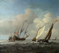 Een Nederlands schip, een jacht en kleinere schepen in een briesje, Willem van de Velde