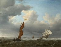 Een Nederlands schip en andere kleine schepen in een sterke wind, Willem van de Velde