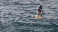 Een Noordse Stormvogel vliegt laag over de zee van Anges van der Logt