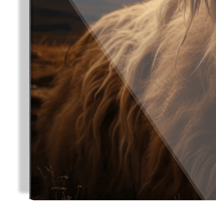 Dit prachtige fine art kunstwerk toont een Schotse Hooglander in zachte oranje tinten, waardoor een sfeer van warmte en rust ontstaat. De majestueuze uitstraling van de Hooglander is vastgelegd met oog voor detail en precisie. Dit kunstwerk past perfect in een landelijk, rustiek of natuurlijk geïnspireerd interieur. De lichte en oranje…