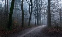 Koop dit landschapskunstwerk Een Pad naar de Stilte: Mystiek in de Avondmist van Hevonax Photography op canvas, aluminium dibond, (ingelijste) fotoprint, behang en ArtFrame, op maat geprint in Fine-Art kwaliteit.