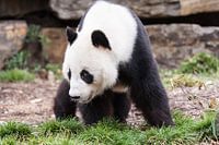 Een Reuzenpanda in close up op zoek naar voedsel dat uit bamboe bestaat. Het belangrijkste voedsel van de Panda is Bamboe. Reuzenpanda's komen van nature voor in China