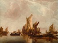 Een Staatsjacht en andere vaartuigen in kalm water, Jan van de Cappelle