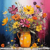 Dit betoverende schilderij uit 'Bloesems in Bloei' toont een harmonieuze mix van kleurrijke bloemen in volle bloei. De kunstenaar legt op vakkundige wijze de delicate dans van bloemblaadjes vast, waardoor een visuele symfonie van de schoonheid van de natuur ontstaat.