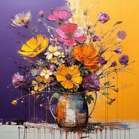 Dit betoverende schilderij uit 'Bloesems in Bloei' toont een harmonieuze mix van kleurrijke bloemen in volle bloei. De kunstenaar legt op vakkundige wijze de delicate dans van bloemblaadjes vast, waardoor een visuele symfonie van de schoonheid van de natuur ontstaat.
