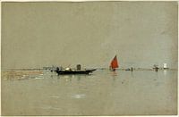 William Stanley Haseltine, Een Venetiaanse lagune, Amerikaans, 1835-1900, c . 1875, Venetie, aquarel op groen papier