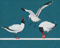 Deze eindeloos charmante scène toont twee meeuwen met zwarte kop en één Sabine meeuw. Je zult iets zoet hypnotisch vinden aan dit beeld, waarin de drie meeuwen worden getoond in een vorm van activiteit. Een scène als deze kan doen denken aan warme dagen. Het kan je een vakantie…