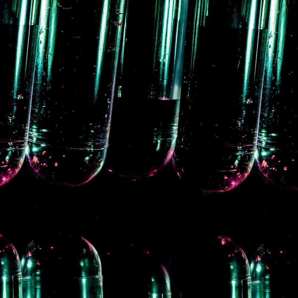 Een abstracte foto op basis van reageerbuisjes en twee lampen van Hans de Waay