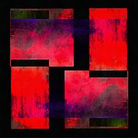 Een stijlvol, kleurrijk digitaal abstract ontwerp met opvallende tinten rood, oranje en paars.