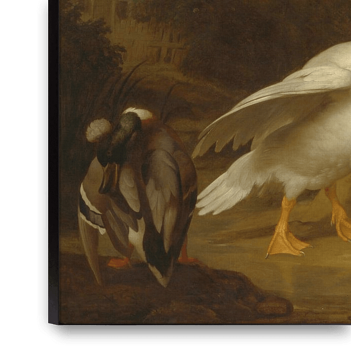 Koop Een ara, eenden, papegaaien en andere vogels in een landschap, Jakob Bogdány als reproductie op canvas, aluminium dibond, (ingelijste) fotoprint, behang en ArtFrame, op maat geprint in Fine-Art kwaliteit.