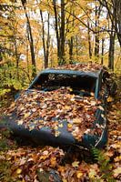 Koop de foto Een autohorloge in het bos in de herfst van Claude Laprise als print op canvas, aluminium dibond, (ingelijste) fotoprint, behang en ArtFrame. Voor jou op maat geprint in Fine-Art kwaliteit.