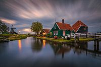 Schemering op de Zaanse Schans, een bekende toeristische hotspot in Zaandijk, in de Nederlandse provincie Noord-Holland, niet ver van Amsterdam.