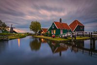 Zonsondergang op de Zaanse Schans, een bekende toeristische hotspot in Zaandijk, in de Nederlandse provincie Noord-Holland, niet ver van Amsterdam.