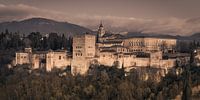 Een zonsondergang bij het Alhambra, een paleis gelegen in de stad Granada, in de regio Andalusië in het zuiden van Spanje. Het Alhambra is een van de beroemdste monumenten van de islamitische architectuur en een van de best bewaarde paleizen van de historische islamitische wereld, naast opmerkelijke voorbeelden van Spaanse renaissance-architectuur.