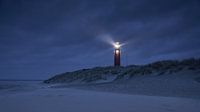 Tijdens het ochtend blauwe uurtje straalt de vuurtoren Eierland op het Waddeneiland Texel en wijst de scheepvaart de weg. Het is een intense sfeer van 's morgens vroeg tijdens stormachtige wind alleen op het strand te zijn. Als fotograaf heb je dan het voordeel dat je de herinnering hebt die de toeschouwer niet heeft. Hopelijk komt die sfeer toch nog enigszins over.