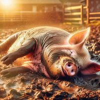 En vrolijk varkensbiggetje in de modderpoel van de boerderij.