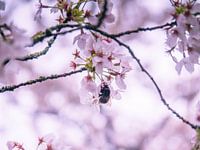 een bij die gaat van bloem tot bloem, voor het verzamelen van nectar.