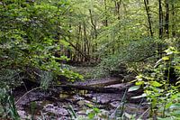 Ik heb deze foto gemaakt in de Leuvenumse bos in gemeente Ermelo. Deze gedeelte van de Leuvenumsche beek stond redelijk droog waardoor je de bodem van de beek kunt zien. Het gedeelte waar deze beek door stroomt is voornamelijk een beukenbos. Ondanks dat deze gedeelte van de beek bijna droog stond waren de bomen nog groen ondanks dat het begin van de herfst was. De plek waar ik deze foto maakte is een soort dam waar een wandelpad overheen gaat. Om deze foto te kunnen maken heb ik mijn camera op statief gezet. Ik heb deze foto in manueel gemaakt.