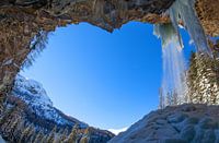 Uitzicht vanuit de beschutting van een waterval