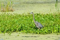 Een blauwe reiger op zoek naar voedsel in het Orlando Wetlands Park bij de stad Christmas in Florida, VS. Erg mooie en gracieuze vogels.