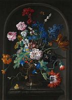 Een stilleven van rozen, tulpen, anemonen, bosklokjes en andere bloemen in een vaas, in een stenen nis, Johann Baptist Drechsler