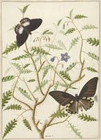 Een bloesemende struik met twee uitheemse vlinders, Hermanus de Wit (1774)