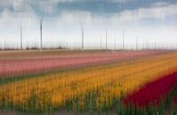 De bollenvelden van Nederland, in de provincie Flevoland op een andere manier gefotografeerd. Met het gebruik van Intentional Camera Movement (ICM) komt er extra dynamiek in de foto. Dit creëert een beeld anders dan de standaard tulpenfoto.