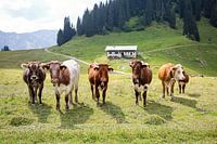 Een bonte mengeling: bruin, rood, gekleurd - jong vee op de alpenweide in het Lochbachtal.
