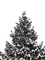 Conifeer bedekt met sneeuw in de winter, zwart en wit.