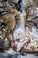 Een opname gemaakt in een bos op La Palma, een van de Canarische eilanden. De opname is gemaakt in het infrarood spectrum waardoor de kleuren afwijken en een vorm van surrealisme creëren