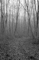 Over ‘Een bospad door een polder loofbos in zwart-wit’ van Gerard de Zwaan